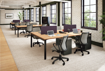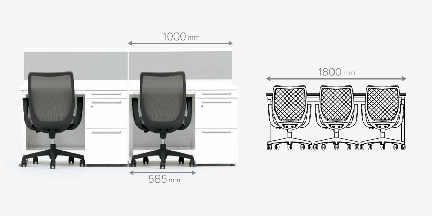 あらゆるオフィス環境に合わせて、使いやすいコンパクトサイズに設計。幅1000mmの片袖デスクにきれいに収まります。また、多くの会議室や研修室などで使用されている幅1800mmのテーブルには、ゆとりをもって3脚並べることも可能です。