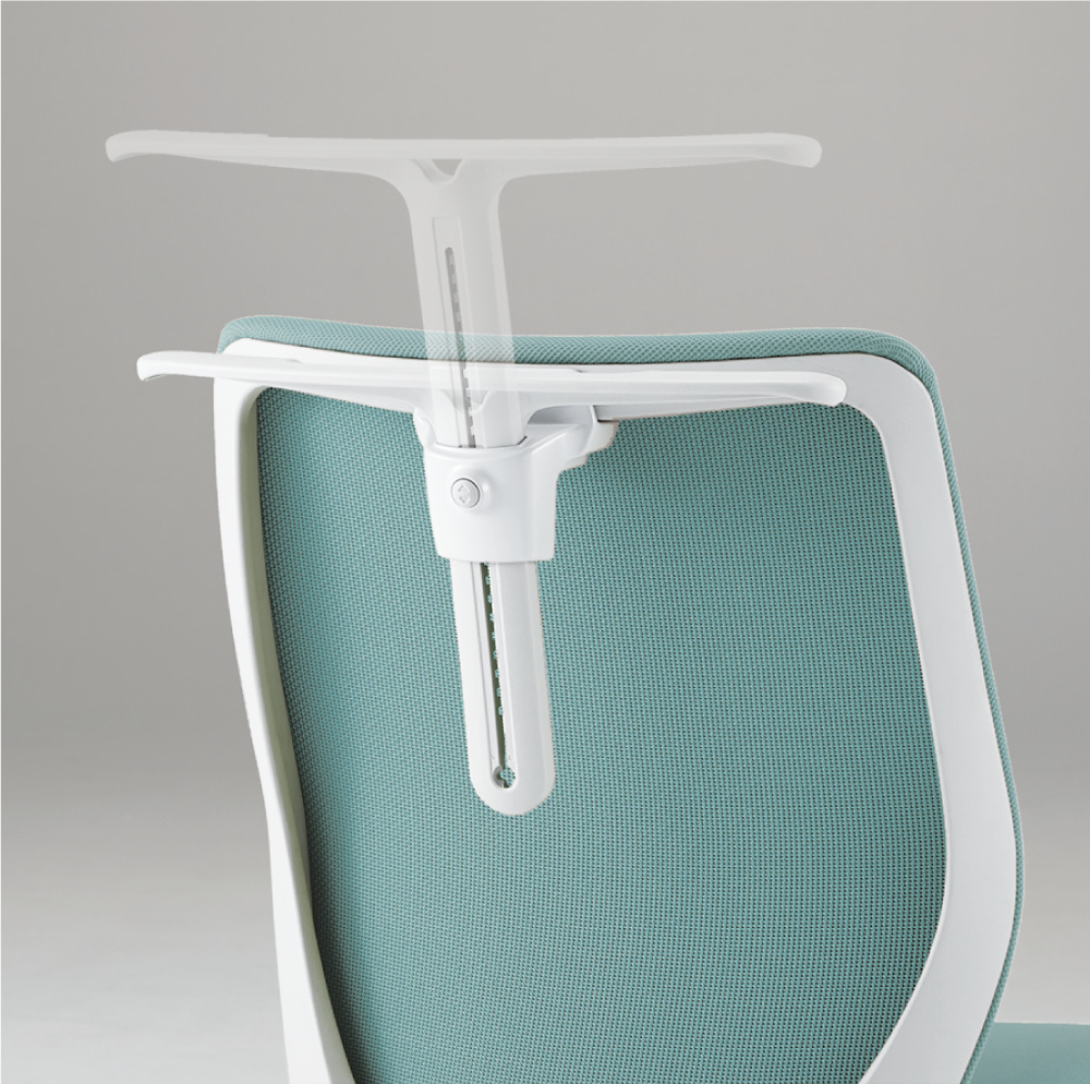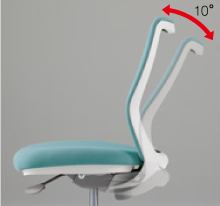 背もたれによりかかると背が後方に倒れます。背もたれの回転ポイントを前方に設定し、ロッキング時の背もたれと体のズレを極力解消し、快適性を追求しました。