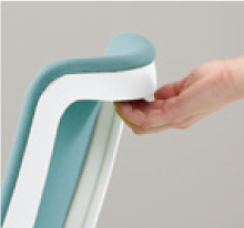 座る時に椅子を引出しやすいように、背フレームに手掛けを設けました。クロスを汚すことななく、椅子を引き出すことが可能です。