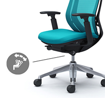 座面の左にあるレバー操作により、座面の奥行き調整が可能です。(ストローク:50mm)