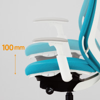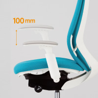 アジャストアームは、肘パッド裏にあるボタンを押すことで、高さの調整が可能です。(ストローク:100mm)