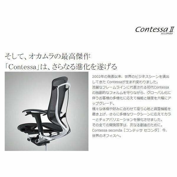 他の画像を見る 日本製 新品完成品 送料無料 オカムラ コンテッサ セコンダエクストラハイバック 大型固定ヘッドレスト CC85GR可動肘 シルバーフレーム ブラックボディ 座:メッシュ ナイロンキャスター メーカー希望小売価格 ¥ 311,520 のところ 当店特別価格 ¥ 249,260 税込 詳細を見る お気に入りに登録する
