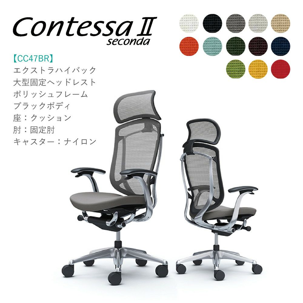 他の画像を見る 日本製 新品完成品 送料無料 オカムラ コンテッサ セコンダ エクストラハイバック大型固定ヘッドレスト CC45BR 固定肘 ポリッシュフレーム ブラックボディ 座:メッシュ ナイロンキャスター メーカー希望小売価格 ¥ 313,060 のところ 当店特別価格 ¥ 250,580 税込 詳細を見る お気に入りに登録する